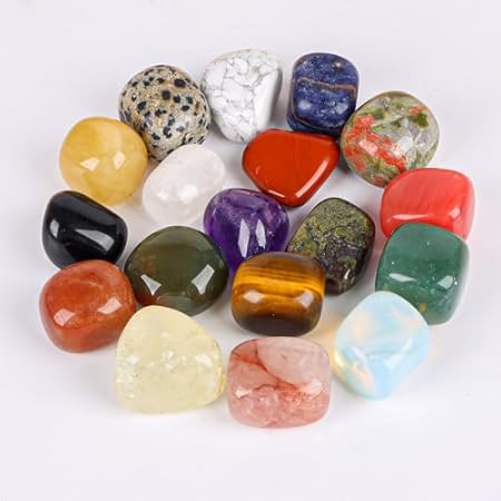 19pcs Polished Stone Set Tumbled Stones,Natural Polished Stone for Meditation,Energy Crystal Healing,Reiki Gift,Chakra Stones and Home Decor(0.6-0.8″) $7.99