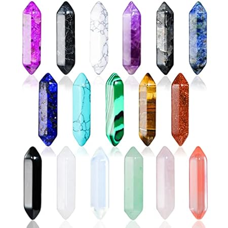 17Pcs Healing Crystals Stones Sets, Hexagonal Bullet Shaped Reiki Meditation Gemstone Chakra Stones Tiger Eye Obsidian Quartz Crystals Gemstone Wand Set Pendants with Storage Box $9.99
